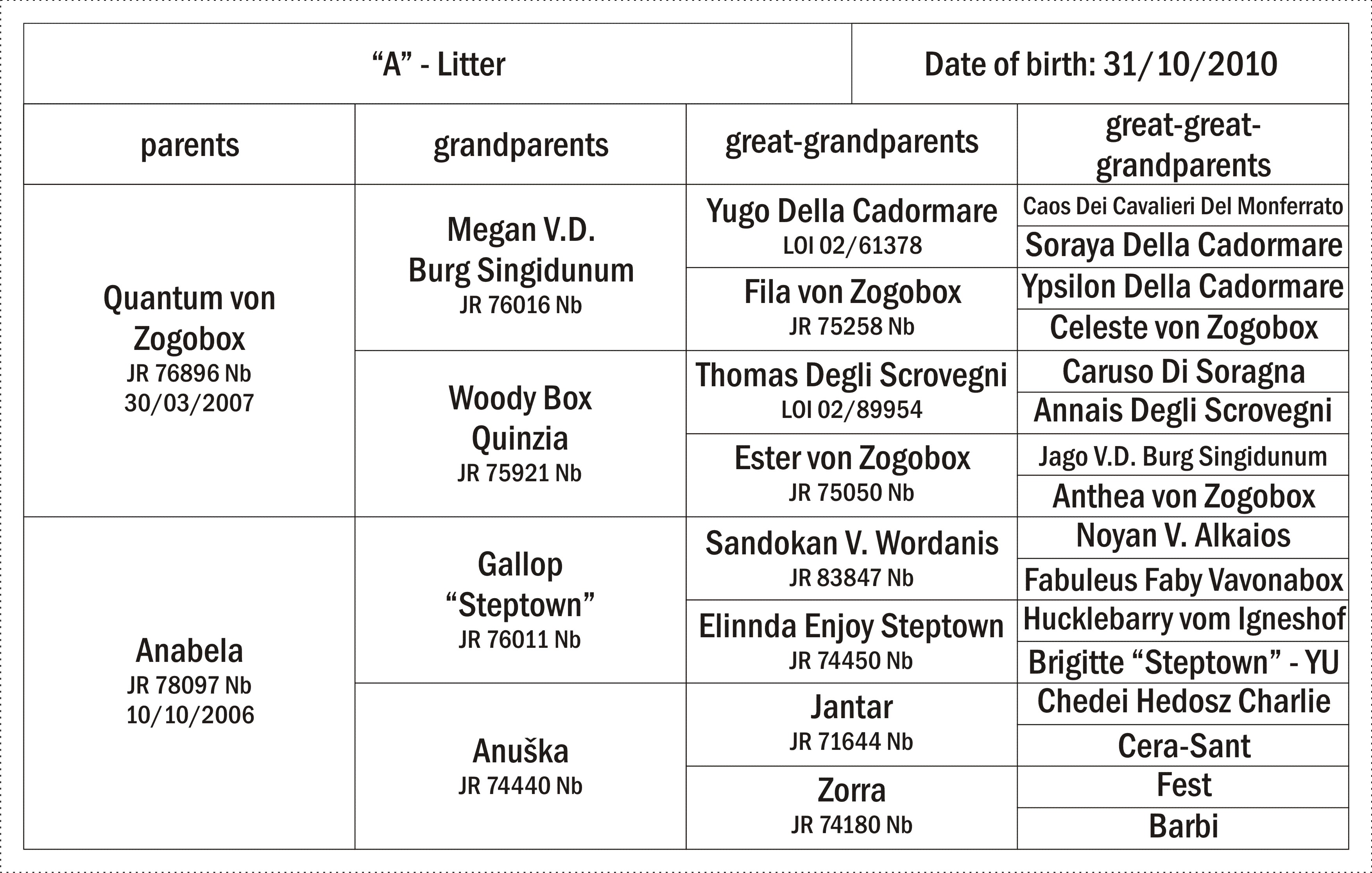 Litter from a mating combination of Quantum von Zogobox and Anabela is born on Sunday morning, October 31, 2010. Debela has successfully whelp five puppies, three fawn males, and two females: one fawn and one brindle. Both females remained with us, these were: A Greta and A Lili Marleen.
