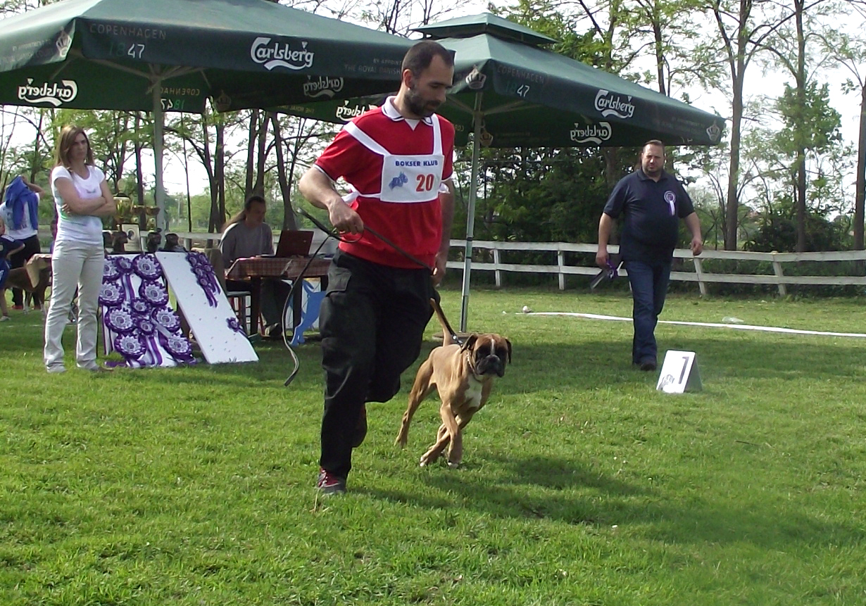 At specialized dog show for German Boxers "Srem Winner" which is for the 4th time organized by section Srem of Boxer Club of Serbia, Cicciolina von Galovica win 1st place in open class - fawn females.